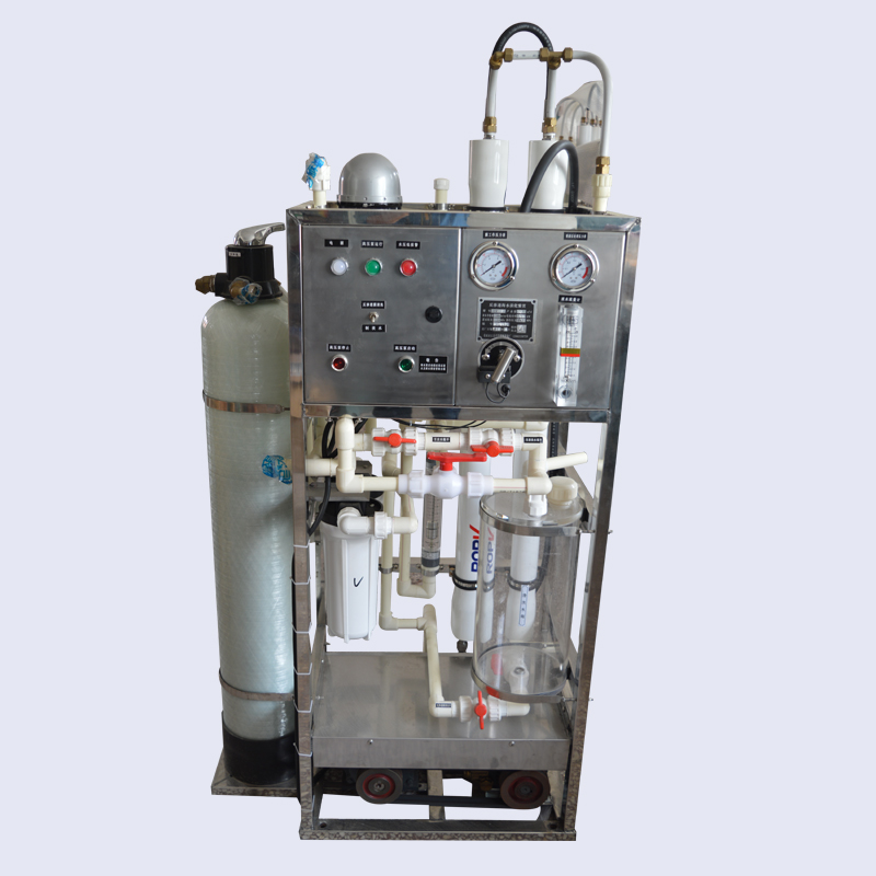海水淡化機可安裝在船舶的輪機艙、船員艙、過道、廚房及有遮蓋的甲板上,底部加基座。設備正面應留有0.6米,兩側及后面各留有0.3米的操作維修空間。